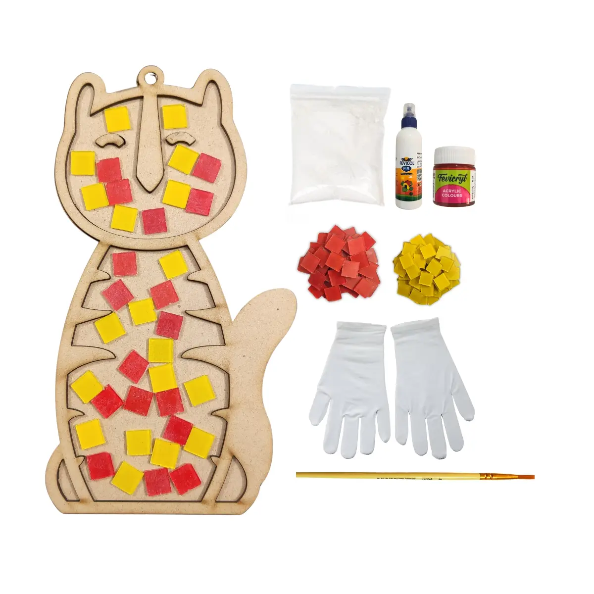 Celebrate your love for feline friends with this charming Cat Mosaic Wall Art, handmade with assorted colored glass mirrors on a sturdy MDF base. This eye-catching piece features a playful or serene cat silhouette, brought to life with shimmering mirror tiles that reflect light and color with every angle.