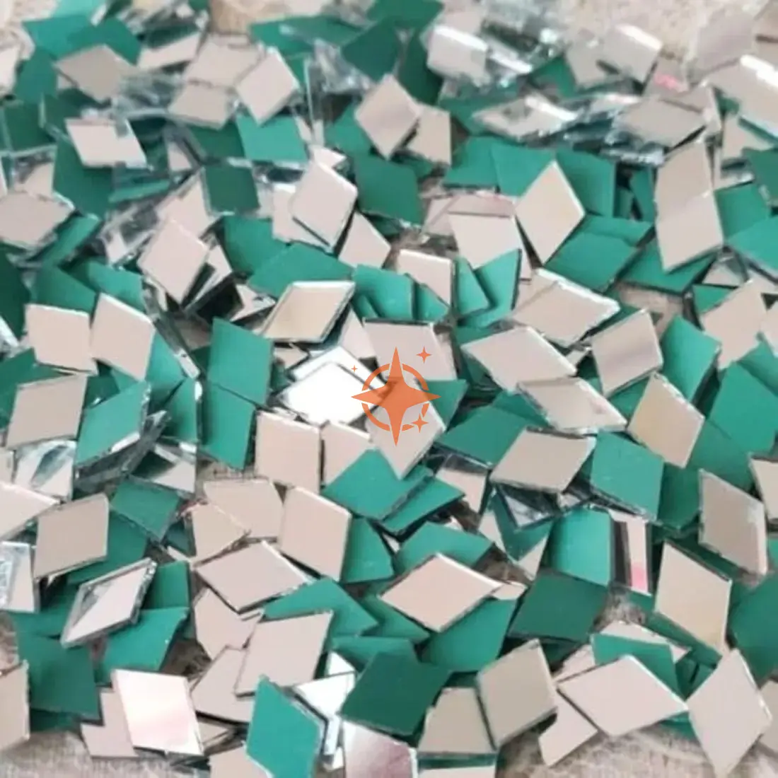Diamond-shaped glass mirrors in 100g packs. Without holes, suitable for jewellery, Lippan art and all types of craft projects. Easy to stick on any surface.