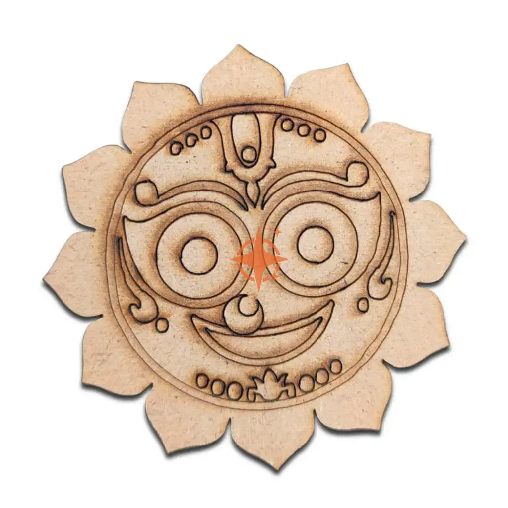 This pre-marked MDF cutout features a divine Jagannathan design on a natural MDF base. The pre-marked outlines make it easy to paint, decorate with resin, or use in various DIY craft projects. Its uncolored surface preserves the natural MDF texture, making it ideal for festive decor, traditional wall art and creative art activities.