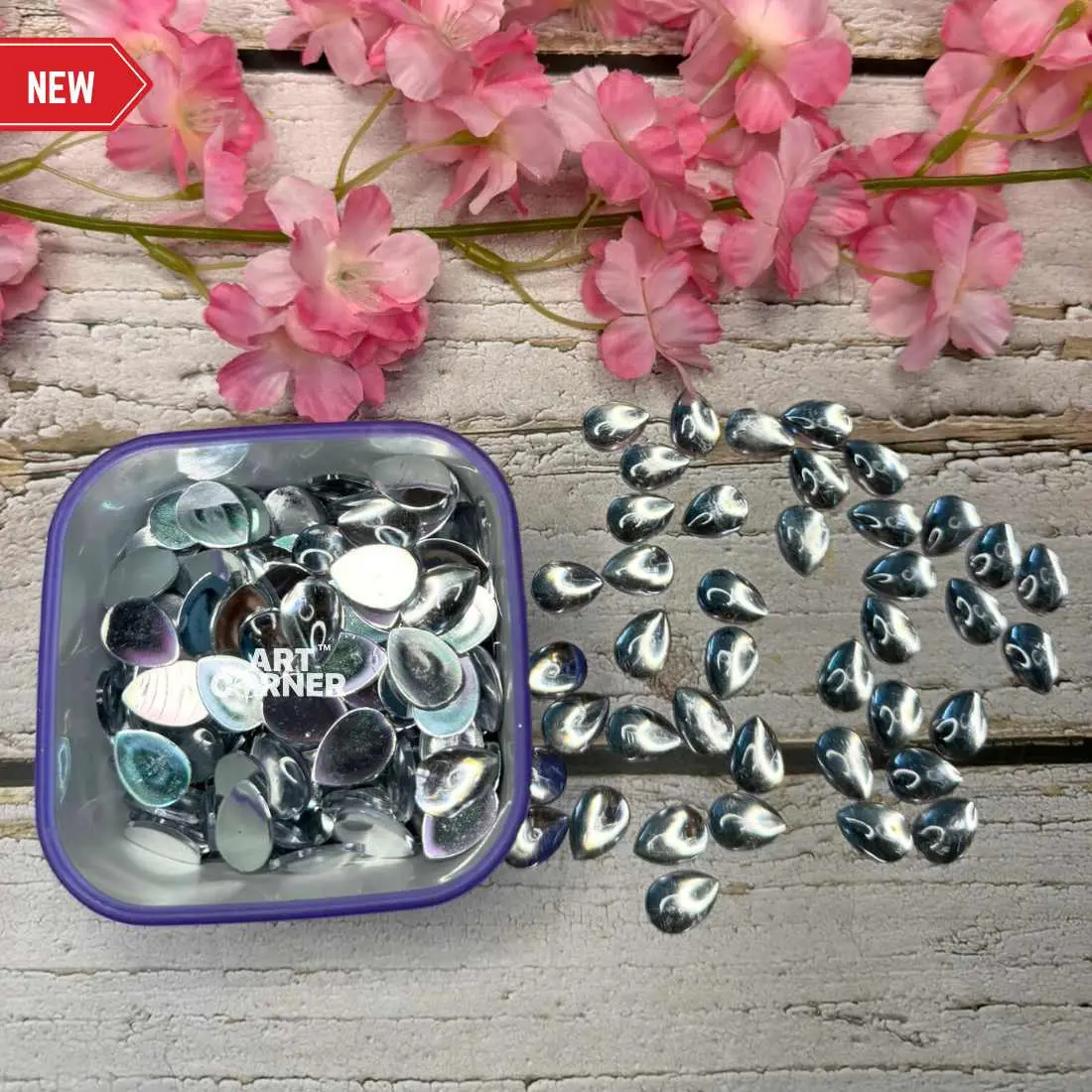 Enhance your artwork with these Tear Drop Plastic Rhinestones. Their glossy surface and shiny silver back create a beautiful reflective effect, perfect for Lippan art, jewellery and decorative crafts. Lightweight and easy to stick, these stones add a vibrant, elegant finish to all your creative projects.