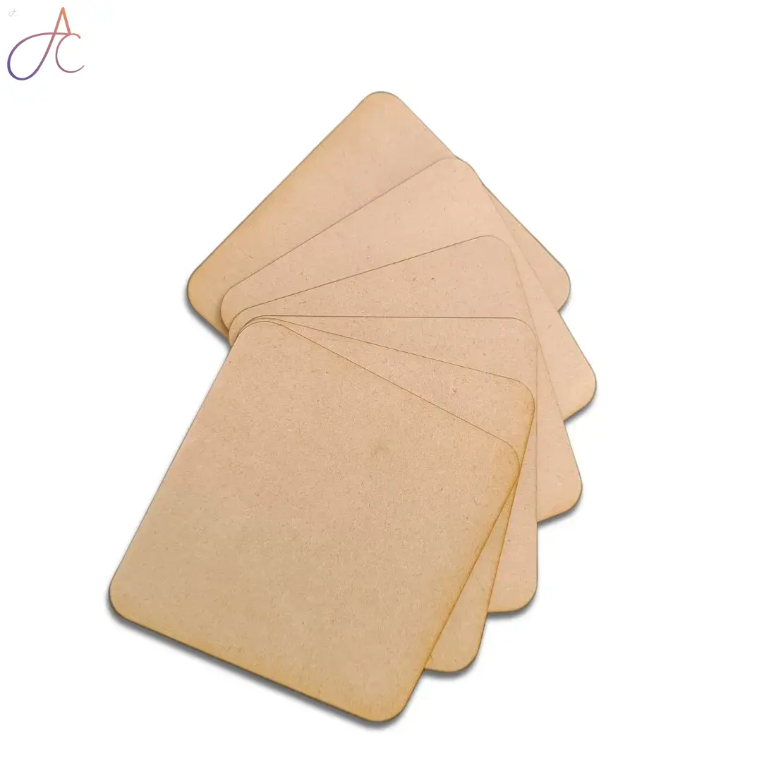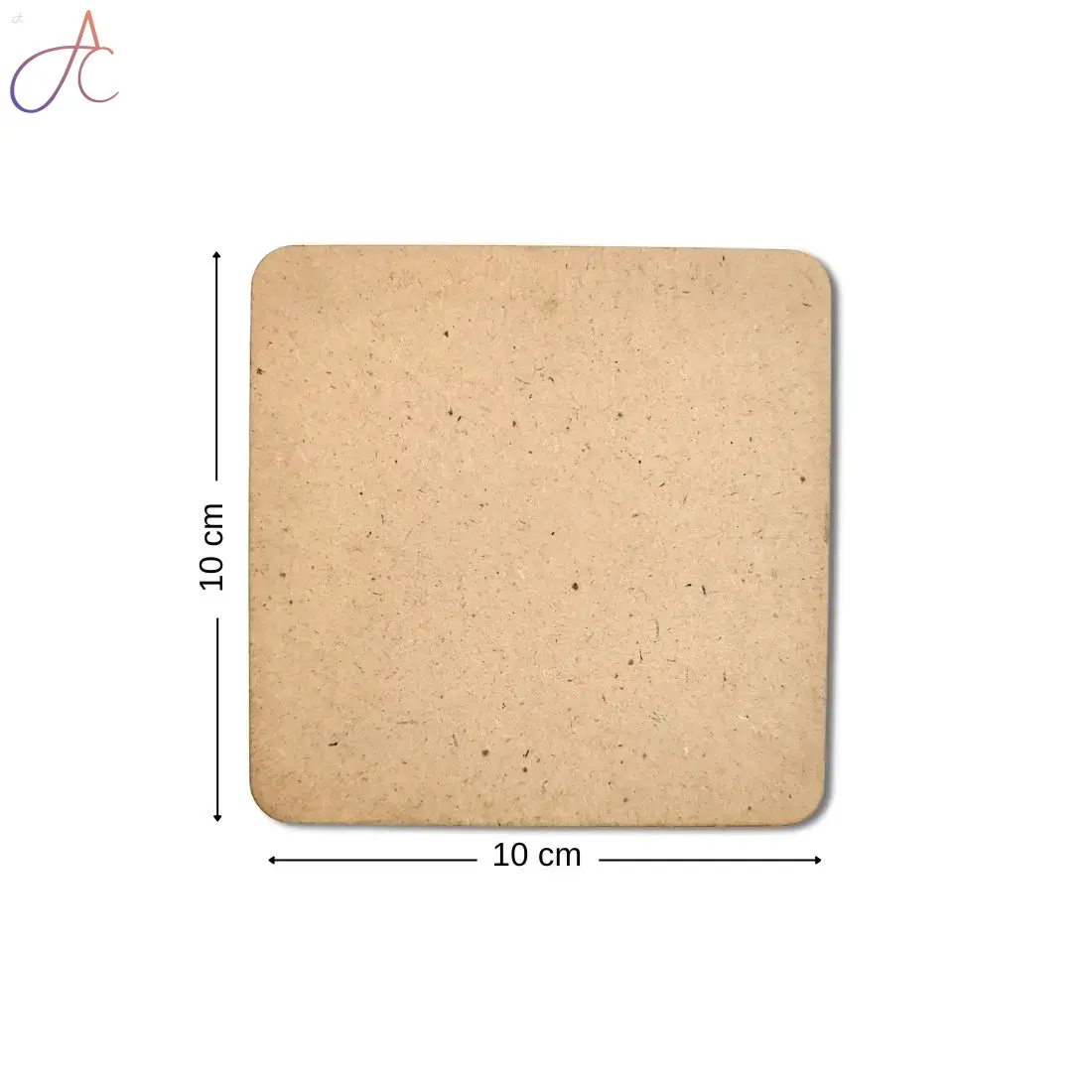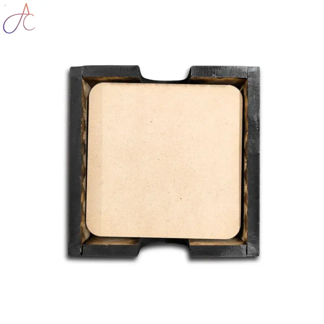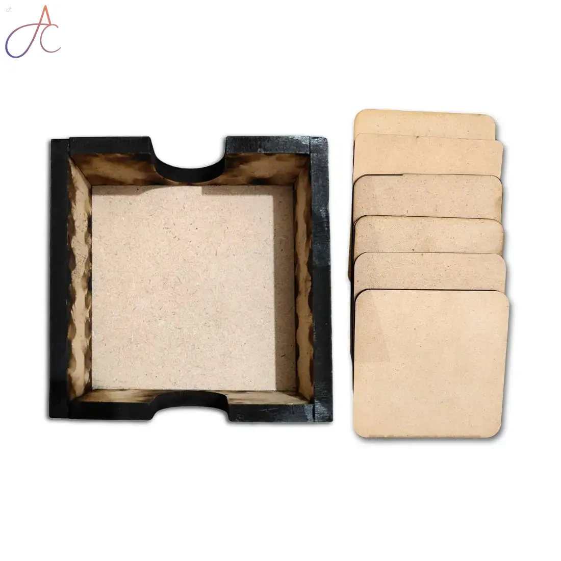 This is a set of 6 high-quality MDF square coasters, complete with a matching open box-style stand for easy storage and display. Each coaster is designed for practical use while also offering a blank canvas for creative projects. Perfect for placing under glasses on tables to protect surfaces, they are also ideal for a wide range of DIY art and craft activities such as acrylic and oil painting, resin pouring, dot mandala art, alcohol ink designs, and more.