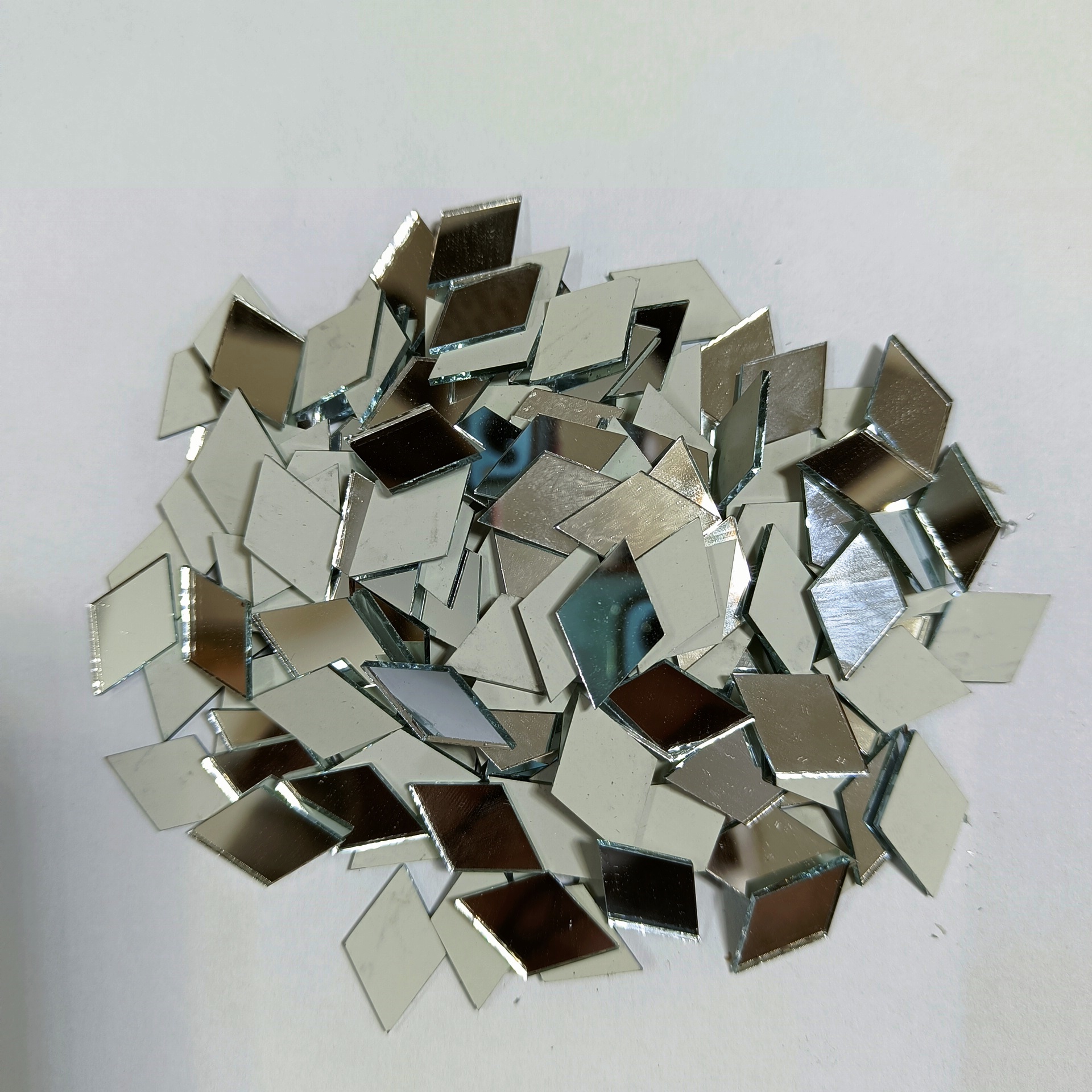 Diamond shaped glass mirrors in 100g, 500g and 1kg packs. Without holes, suitable for jewellery, Lippan art and all types of craft projects. Easy to stick on any surface.