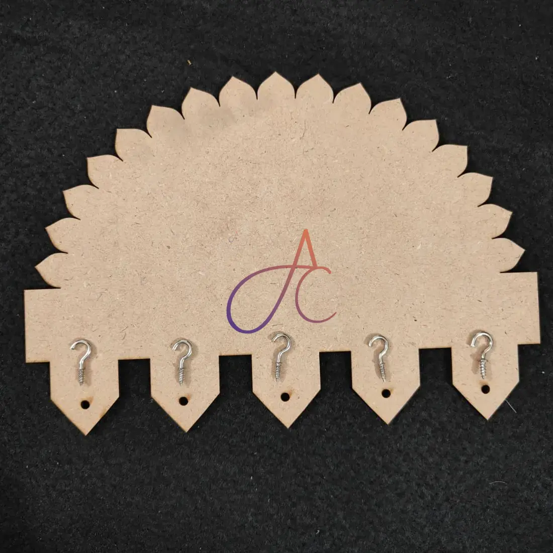Keep your essentials organized with this stylish MDF Keyholder. Crafted from premium MDF in 3mm and 4mm thickness options, this keyholder is both durable and lightweight. Measuring 10 inch x 7 inch, it comes attached with 5 keyhooks, making it ideal for neatly arranging your keys. Its plain MDF surface also allows you to customize it with paints, mirrors or other craft decorations to suit your home or office decor.