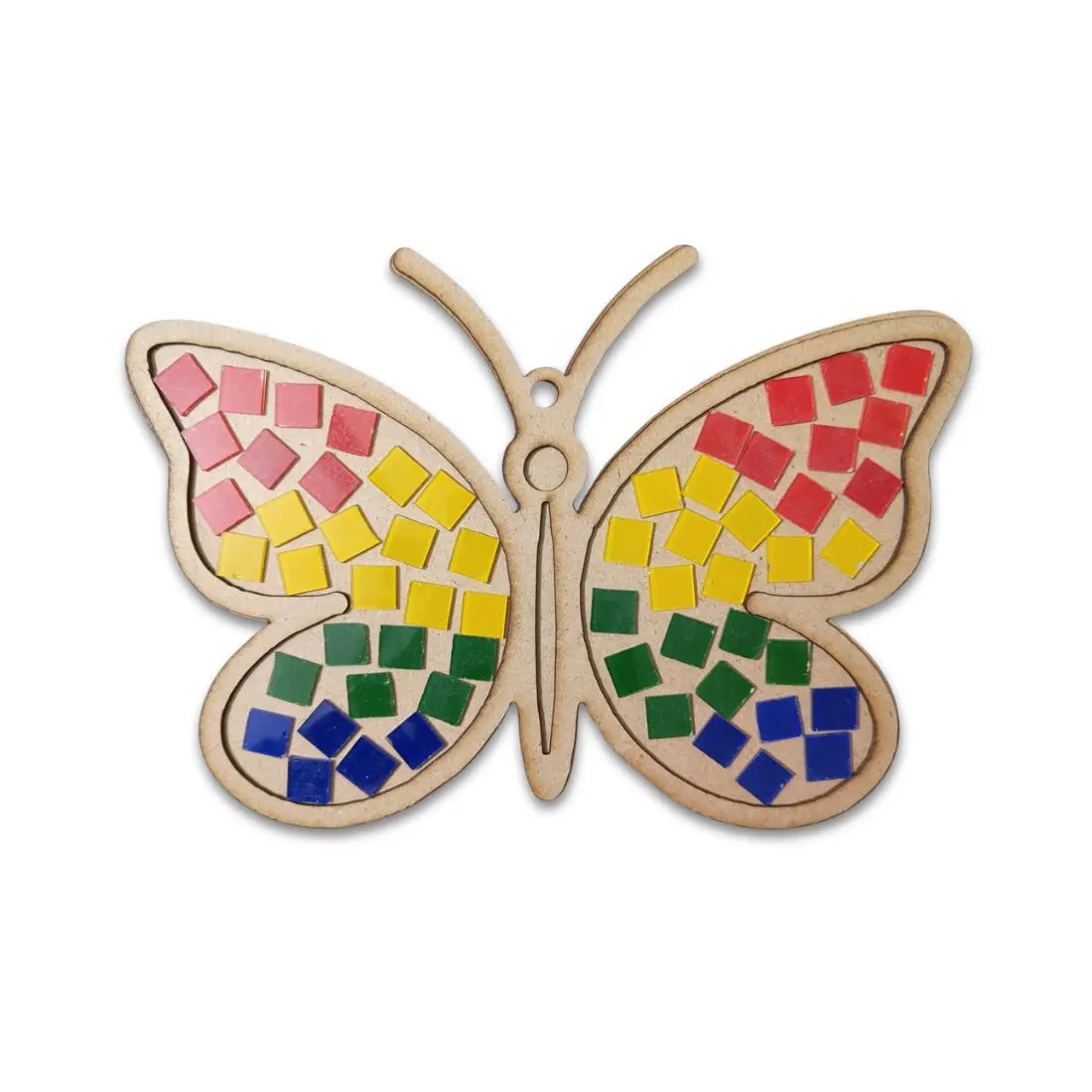 Add a splash of color and charm to your space with this handcrafted Butterfly Mosaic Wall Art. Measuring approximately 9" x 9", this vibrant piece showcases a delicate butterfly design brought to life through a 2-layer structure that adds depth and visual interest.