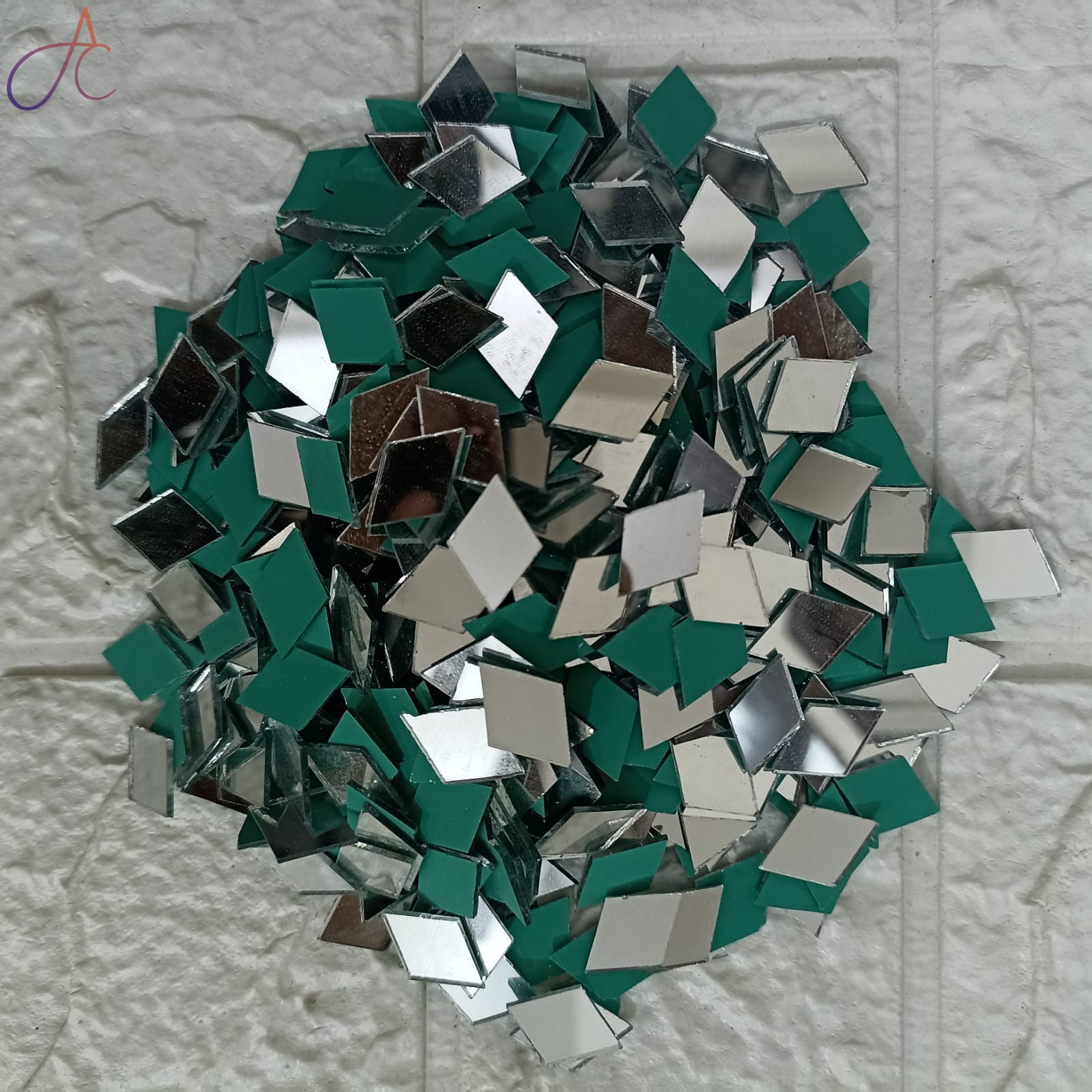 Diamond-shaped glass mirrors in 100g, 500g and 1kg packs. Without holes, suitable for jewellery, Lippan art and all types of craft projects. Easy to stick on any surface.