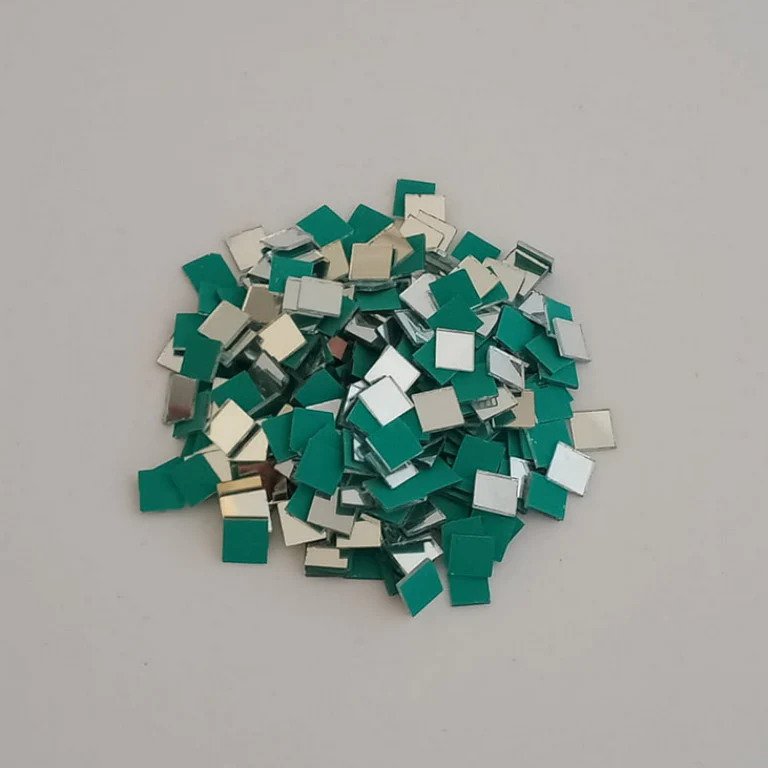 Square-shaped glass mirrors in 100g packs. Without holes, suitable for jewellery, Lippan art and all types of craft projects. Easy to stick on any surface.