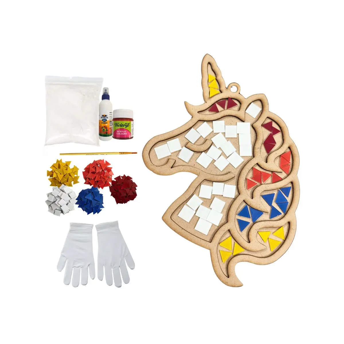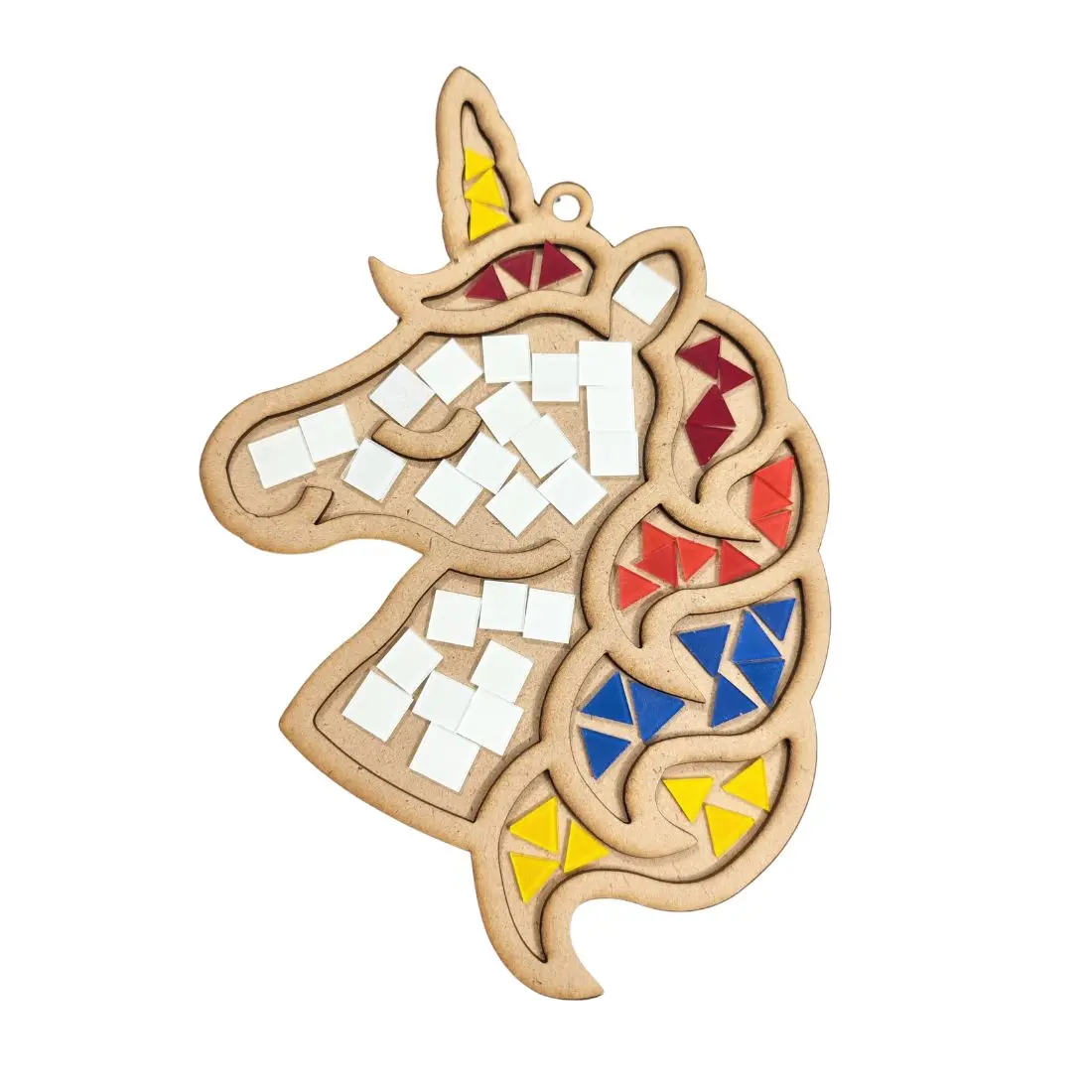 Bring a smile and a sprinkle of sparkle to your space with this adorable Unicorn Face Mosaic Wall Art. Measuring approximately 9" x 9", this handcrafted piece features a sweet unicorn face with delicate details, brought to life through a 2-layer design for added depth and dimension.